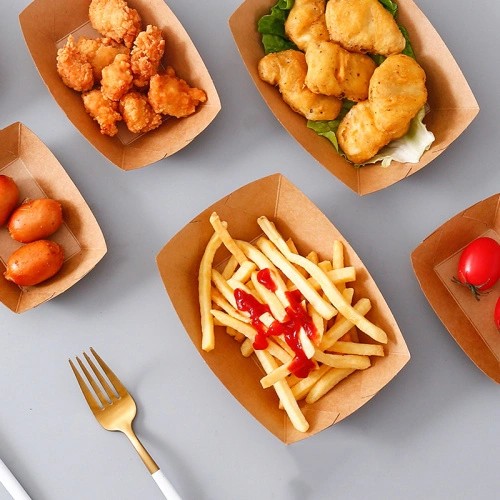 Hanxhosa reconciled the traditional candy package with a high quality boat fly cup and combined its leading design and uncompromising environmental responsibility. These multifunctional containers are aimed at improving your experience and supporting the brand's sustainable development goals. Ergonomic suitable forms provide superior stability to prevent overturning or spilling even if you eat a large amount of potato chips, corn flakes and other finger foods. The three tier structure we own can ensure outstanding oil and fat, and even the most fatty snacks can maintain the integrity of the container -- this is a common pain spot for standard paper packaging. The wide opening is designed to be easily packed with a high speed service counter and provides convenient food to you. These containers are made of food safety materials approved by the U. S. Food and drug administration, approved by the U. S. Department of food and drug administration, and do not contain PFAS and other hazardous chemicals, and ensure complete safety in direct contact with food. The decorative surface of natural kraft paper shows real aesthetic aesthetics, attracts environmentally conscious consumers, and at the same time can adapt to high quality brands through our advanced printing options.